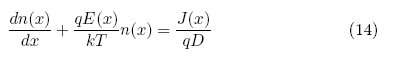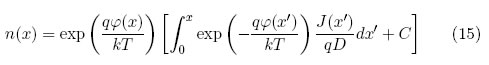 Teniendo en cuenta que el campo eléctrico E se relaciona con el potencial electríco φ de la forma ∫ E(x)dx = −φ(x) y solucionando la ecuación (14), se tiene: