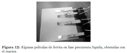 El reactor fue utilizado en el crecimiento de películas delgadas de partículas de ferrita (Fe3O4) en suspensión coloidal, estabilizadas en medio acuoso.