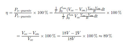 Siendo Po-puente y Pi-puente las potencias de entrada y de salida del puente H en cada periodo de la señal PWM, respectivamente.