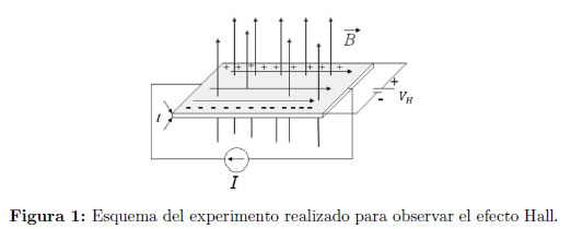 Siendo n y p las concentraciones de electrones y huecos en el material, respectivamente; μn y μp las movilidades de los electrones y los huecos en el material, respectivamente y e la magnitud de la carga eléctrica del electrón. El arreglo experimental para medir el voltaje Hall se presenta en la Figura 1.