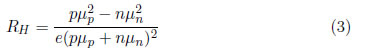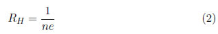 Donde n es la concentración de portadores de carga libres en el metal y e la magnitud de la carga eléctrica del electrón. Para materiales semiconductores la constante Hall está dada por la relación: