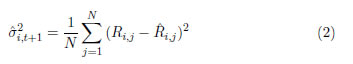 dado por la ecuación (2) en donde i,t+1 denota ''varianza'', N es el número