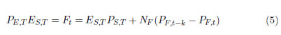 El objetivo de la cobertura consiste en determinar el número de contratos NF de tal forma que el generador pueda fijar un precio de venta de su energía en el mercado spot con el precio que conoce del mercado de futuros, para esto, asuma que la liquidación en (5) es equivalente al precio de venta esperado durante el periodo T (denotado como PE,T ) multiplicado por la energía vendida en ese mercado, matemáticamente: