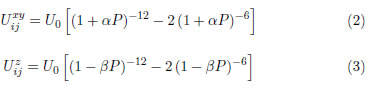 here, U0 stands for the magnitud of ferroelectric interaction associated to zero strain, P is the uniaxial compressive stress in the out of plane direction. The quantities 1+αP and 1−βP are proportional to the augmented and reduced length of distances in xy plane and z axis respectively under the action of P, counting for strain-polarization intensity relationship. That means, α and β values depend on the specific effect of mechanical stresses on the ferroelectric material and parameters to be adjusted with reported experimental data . A particular case, for α = 1/Y and β = ϵ/Y (Young modulus Y, and Poisson ratio ϵ) gives the Hamiltonian previously studied by Laosiritaworn et al. [15].