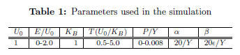 For simulations U0 was set as 1, re-defining the unit of temperature T as (U0/KB) (being KB the Boltzmann constant), the electric field E was considered in units of U0 and stress introduced through the dimensionless ratio P/Y . The parameters used in the simulation are listed in Table 1. The updating procedure for electrical displacement at any site is done as follow: For a given temperature and starting from a random lattice site, a new random orientation is assigned to ui among the six possible directions, then the Hamiltonian is calculated and the Metropolis algorithm is used to update the electric displacement in the site [22]. This procedure is repeated for all sites in the lattice(One Monte Carlo step (MCS)), and repeated as many times as necessary to reach the relaxation of the system. We used 10.000 Monte Carlo steps (MCS) for the relaxation of the system and 5.000 MCS more, to determine the average for polarization along the z direction and susceptibility, Equations (4) and (5); N is the total number of dipoles in the sample. The same algorithm was used to obtain the hysteresis loops, but in this case the electric field was varied instead of the temperature.
