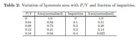 Figure 4 shows hysteresis loops at different non-ferroelectric impurity percentages from 0 to 40%. The increased presence of these impurities in the lattice, causes a transition temperature reduction and the decrease on the hysteresis loop areas Table 2. This is due to the fact that less states of polarization for the system are available with the impurities. Therefore, less dipole-dipole interaction and domain formation results. The effect of these defects in the sample is notorious, becoming an important parameter to control these ferroelectric properties.
