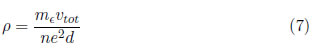 donde d es el espesor de la muestra. Aquí el tiempo de relajación no se tiene en cuenta; sin embargo, el número de veces que el electrón colisione antes de pasar a través de la pared magnética, dando un incremento a la frecuencia de colisión v = vtot/d es considerado. Esta es una consideración puramente geométrica y no una consideración de fluctuaciones térmicas. Para determinar la frecuencia de colisiones que sufre un electrón antes de cruzar la muestra, se emplea la siguiente expresión [11]: