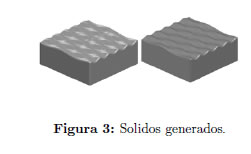 Para cada probeta se realizaron las mediciones de los parámetros tribológicos Sa, Sq y Sm . Se tomaron los valores promedio, máximos y mínimos para realizar los modelos de las superficies tridimensionales, los cuales suman en total 36 superficies. Se desarrolló un algoritmo que genera una superficie de 250 μm2, con un perfil sinusoidal, un ejemplo de las superficies obtenidas se puede observar en Figura 2.