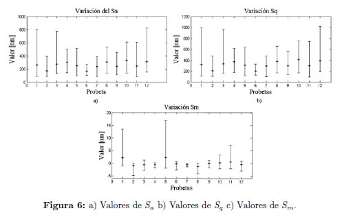 Los parámetros tribológicos resultantes del proceso de medición con el AFM se pueden apreciar en la Figura 6, donde se observa el valor promedio, máximo y mínimo para las mismas zonas analizadas.