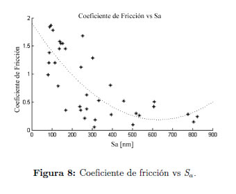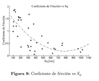 Un hecho que se evidencia en la Figura 8 y Figura 9 es que el coeficiente de fricción disminuye a medida que los parámetros tribológicos Sa y Sq aumentan, este hecho concuerda con los hallazgos realizados por Rabinowicz [48].