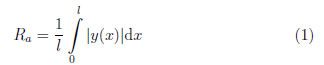 El parámetro Ra es conocido comúnmente como la rugosidad de una superficie, y está definida como la media aritmética de los valores absolutos de las separaciones o alturas del perfil rugoso con respecto a la línea media del tramo de longitud medido l y matemáticamente está dada por la Ecuación (1).