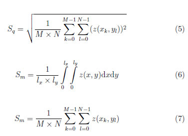 De forma análoga los parámetros Sq y Sm vienen dado por las relaciones matemáticas presentadas en la Ecuación (4) y Ecuación (6), o en forma de sumatoria en la Ecuación (5) y la Ecuación (7) respectivamente.