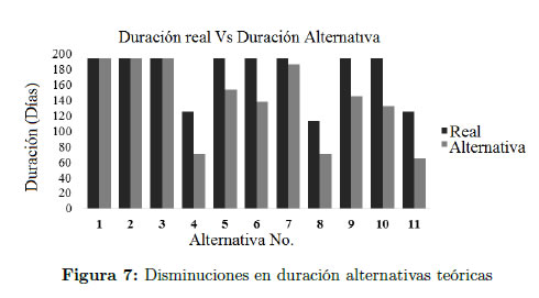Como resultado de la alternativa número 12, se obtuvo una disminución del 7% en el tiempo total de la obra con respecto a la programación inicial.
