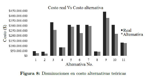 Las alternativas de mejora propuestas en el proyecto permitieron reducciones de tiempo y costo. Aunque en algunas la reducción del costo no fue significativa, la reducción de tiempo si puede representar grandes beneficios para el contratista como ahorros en carga prestacional y costos indirectos, para el dueño uso del bien de manera anticipada, y para los demás interesados del proyecto.