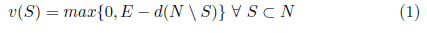 El valor de cada coalición v(S) obedece a una valoración pesimista de lo que ésta puede lograr, en donde después de realizar un proceso de repartir entre los demandantes que no están en la coalición, el saldo es asignado a la coalición S.