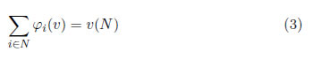 Una imputación para un juego (N,v) corresponde a un vector de pagos racional individual φ(v) Rn, sobre el cual se realiza el proceso de repartir el monto máximo v(N) entre cada uno de los jugadores. Para que la solución sea adecuada es necesario que el vector de pagos cumpla con el principio de eficiencia [3], en donde :