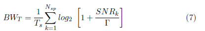 La expresión para calcular el total de bits/seg que pueden ser transmitidos en el canal PLC, está dada por (7):