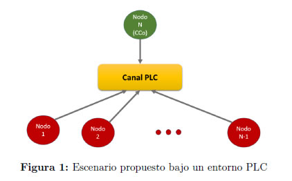 En la Figura 1 se presenta el esquema general de la topología de red propuesta, la cual está constituida por N nodos. Cada nodo está conformado por un adaptador PLC y una fuente de tráfico. El nodo N será considerado como nodo principal o Coordinador Central (CCo) de la red PLC, el cual será el encargado de administrar el Bit-rate asignado a cada nodo (soportado en el valor de Shapley), acorde con las condiciones del canal PLC, el número de nodos conectados y la demanda de tráfico existente.