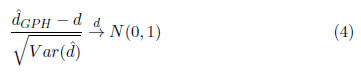 ) son respectivamente el estimador máximo verosímil de d y la estimación de su error estándar. Los autores demostraron que bajo la hipótesis nula estadístico td tiene una distribución límite normal estándar (td
