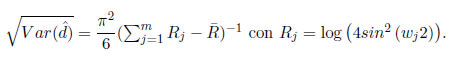 donde Iz(wj) es la j-ésima ordenada del periodograma de Zt, wj= es la j-ésima frecuencia de Fourier, νj es el término de error en la regresión, el cual se asume i.i.d 3 de media cero y varianza constante