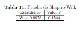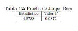 A continuación se presentan los resultados de algunas de las pruebas de normalidad sobre los residuales del modelo identificado.