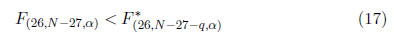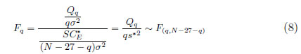 Luego, la hipótesis nula H0 se rechaza a un nivel de significancia α% si Fq > F(q,N−27−q,α).