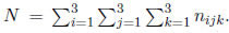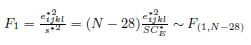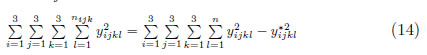 donde nijk es el número de observaciones en el tratamiento ijk−ésimo, de modo que Cabe anotar que para todo caso nijk=n, excepto en el tratamiento del cual se extrajo la observación
