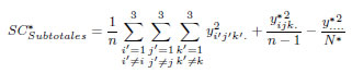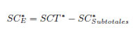 La expresión del lado derecho es la diferencia entre la suma de cuadrados total y la suma de cuadrados de los subtotales esta dada por:
