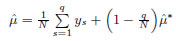 Lo que dice esta expresión es que la estimación del parámetro de la media global, involucrando las observaciones influyentes, resulta igual a la estimación del parámetro sin ellas presentes, ponderada por la proporción de observaciones no influyentes, más la suma de los valores de las observaciones influyentes, divididas por el número total de observaciones.