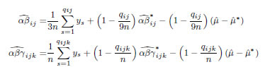 corresponde al total del mismo tratamiento ijk-ésimo pero en el modelo desbalanceado, notado por (ijk)* y dividido por el número de observaciones resultantes allí (n−1).